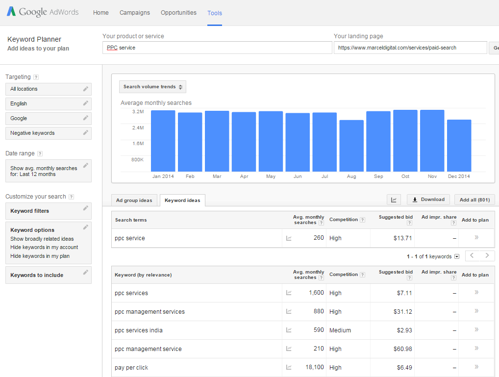 Of course, in order to use this tool you will have to sign up for AdWords, but you can access the tool without creating any campaigns.