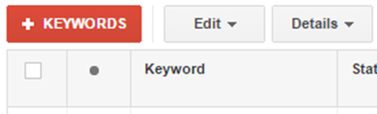 - Click on the + Keywords button highlighted in red