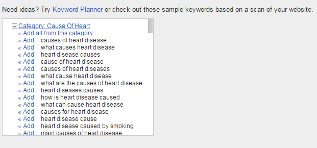- Click “Add” to add in a suggested Keyword Planner keyword