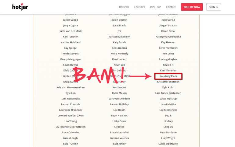 Because of this early adoption from Kourtney, she has been listed as a founding member on the Hotjar website. We hope to continue to help the tool grow and see amazing results from conversion rate optimization. BAM!