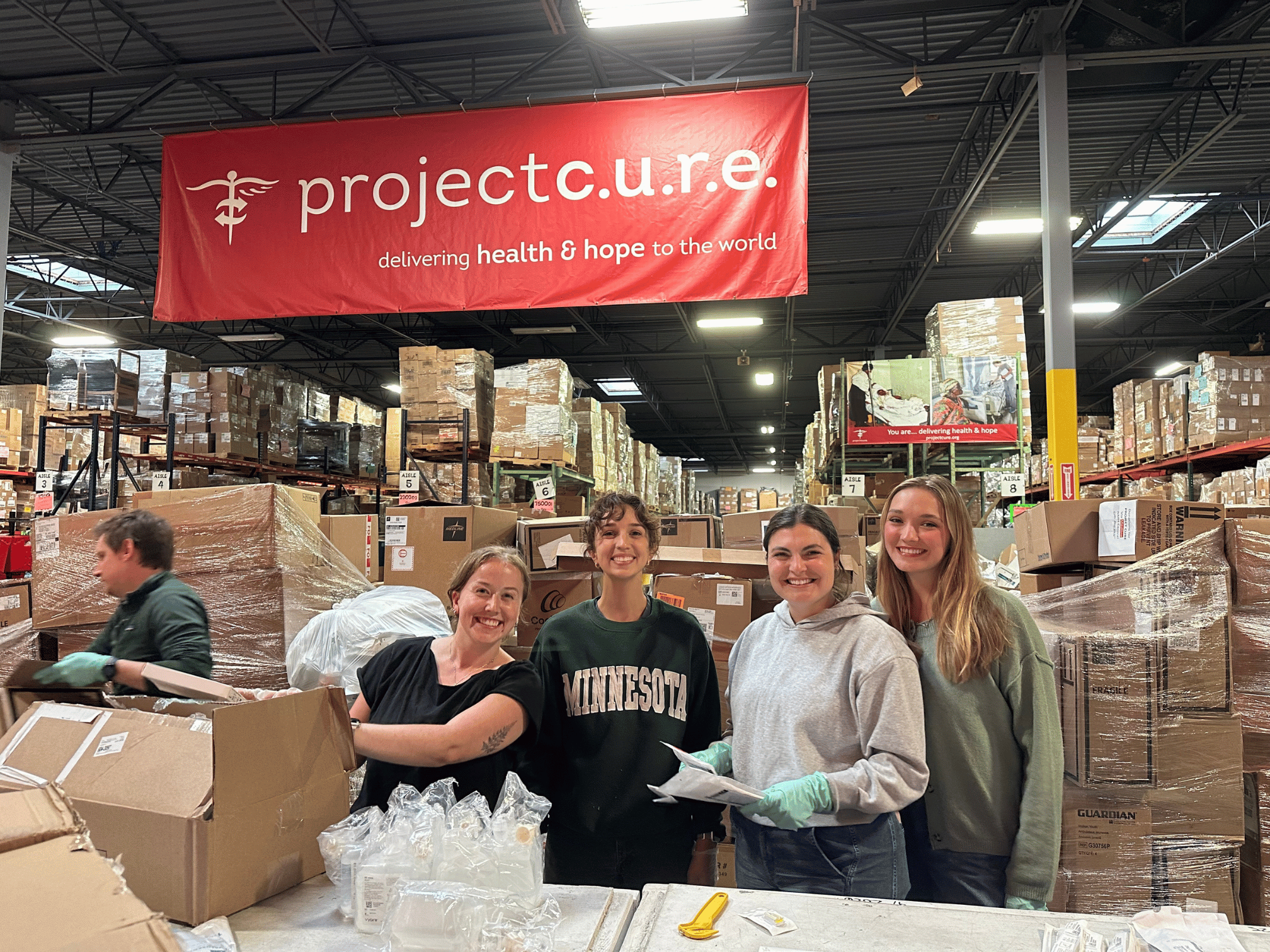 Walking through the warehouse, we were struck by the sheer scale of the operation. Project C.U.R.E. processes massive amounts of donated medical equipment and supplies, and each shipping container requires roughly 800 hours of volunteer time to fully sort, pack, and prepare for delivery. While our team’s contribution represented just a small part of that effort, it gave us a meaningful glimpse into the dedication required to make such lifesaving work possible.