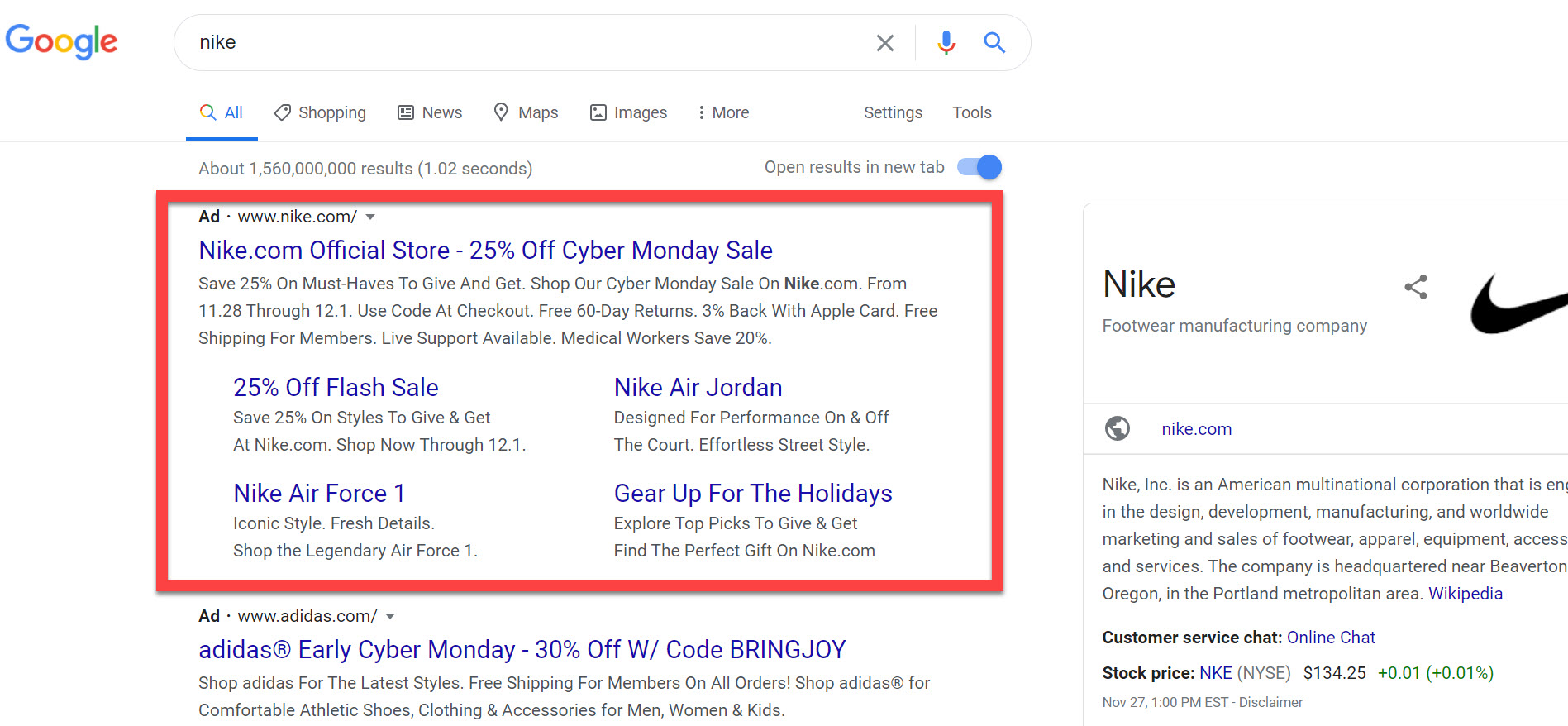 There are both flat-rate PPC and bid-based PPC. While many websites offer flat-rate, search engines often turn to bid-based PPC. Google and Bing let brands battle out who will land in the top paid results for the hottest keywords. This can make it pricy to aim for highly popular search terms and much more cost-effective to aim for local or niche terms.