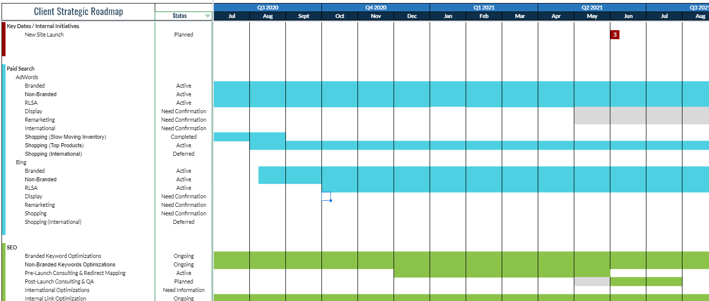 It is important to have a well-vetted roadmap that shows how when these channels and tactics will be deployed. This is helpful not only from an execution perspective but also from an alignment perspective. Developing a comprehensive roadmap ensures your digital calendar and your marketing calendar remain tightly aligned.