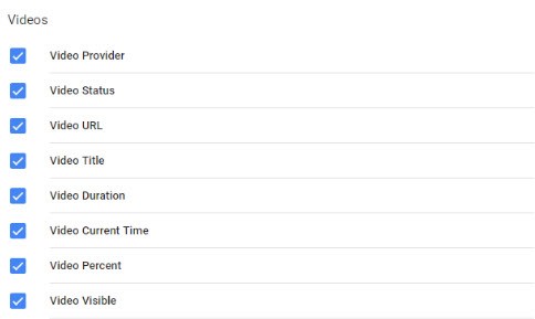 - Scroll down to the videos section and select all the variables under “Videos”
