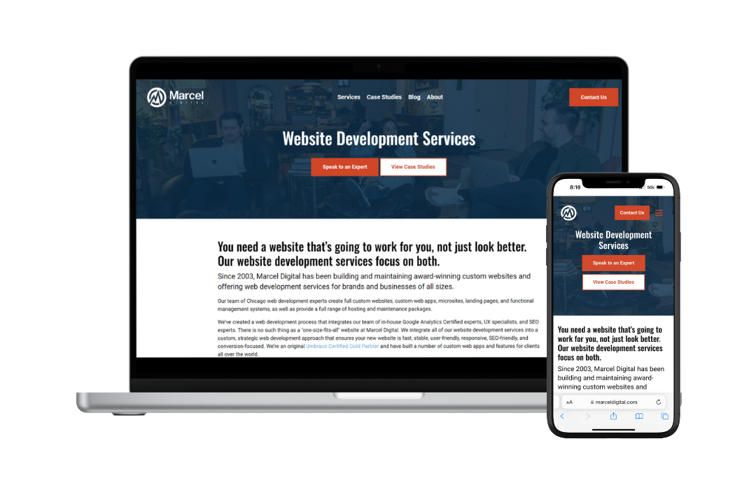 At Marcel Digital, we specialize in creating responsive, high-performing websites using advanced CMS solutions like Umbraco. Our team of experienced developers and strategists is dedicated to ensuring your website is not only visually appealing but also functional and user-friendly across all devices. Contact us today to learn how we can help you build a responsive website that enhances user engagement and drives conversions.