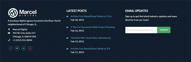 - Include company name and business contact information in your site footer