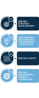 B2B Monthly Ongoing SEO Management and Execution: Our monthly ongoing SEO service is designed for clients seeking a dynamic and proactive SEO partnership. As part of a monthly retainer, we not only research and develop your SEO strategy but also execute and refine it to ensure peak performance. This ongoing engagement allows us to adapt to search engine algorithm updates, industry trends, and your evolving business objectives, ensuring continuous improvement in rankings, visibility, and most importantly, results.